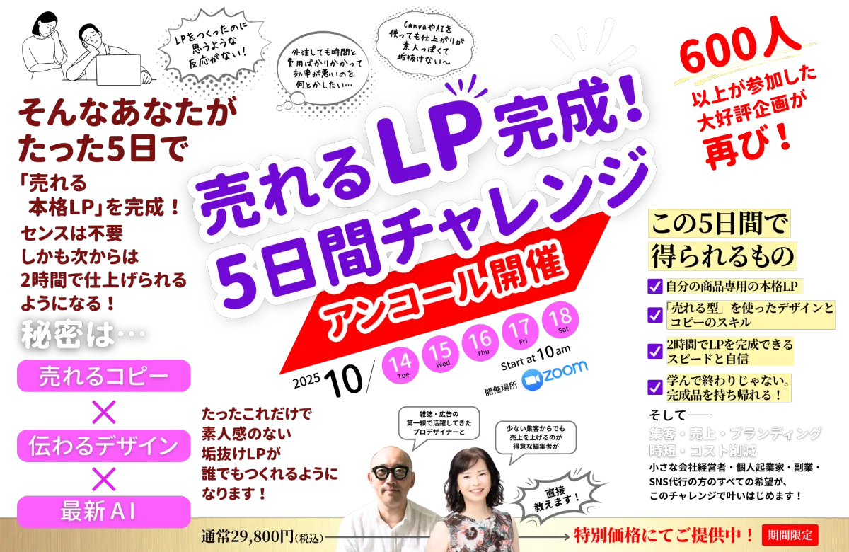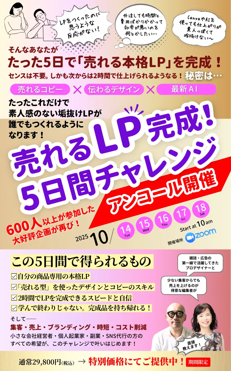 この機会に、あなたのビジネスを加速させるLPスキルを次のレベルへ引き上げませんか?