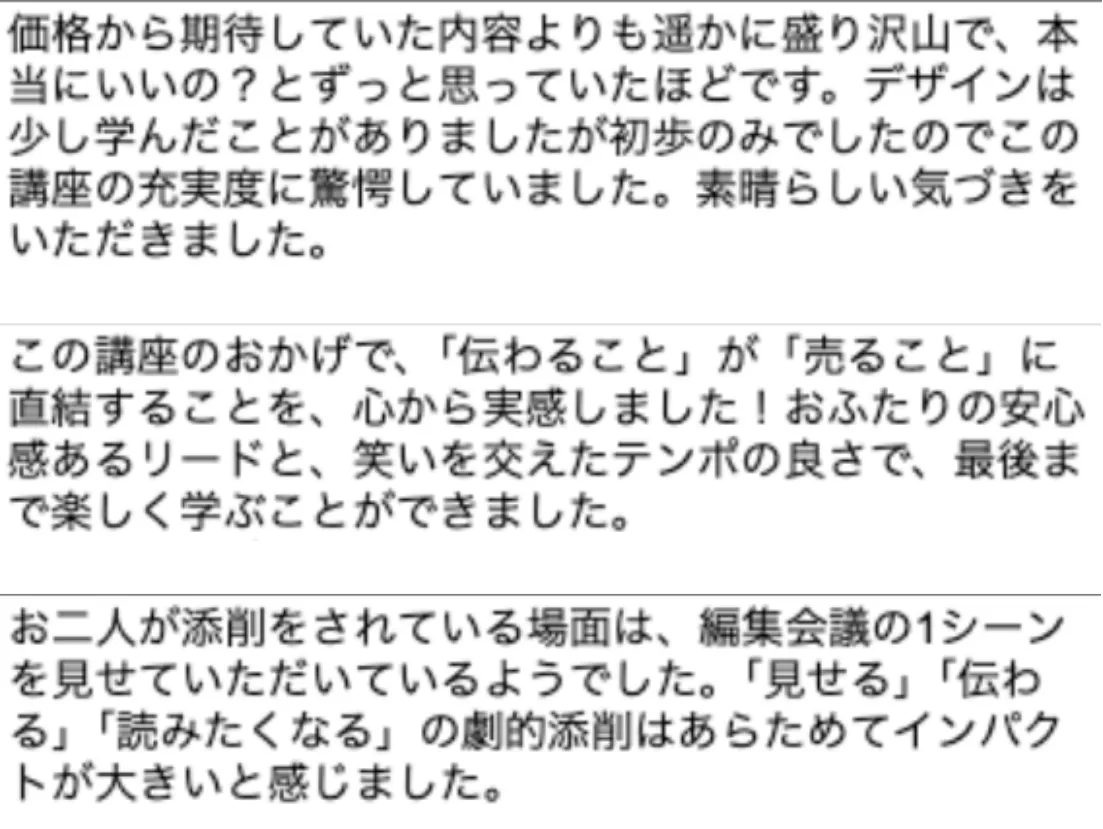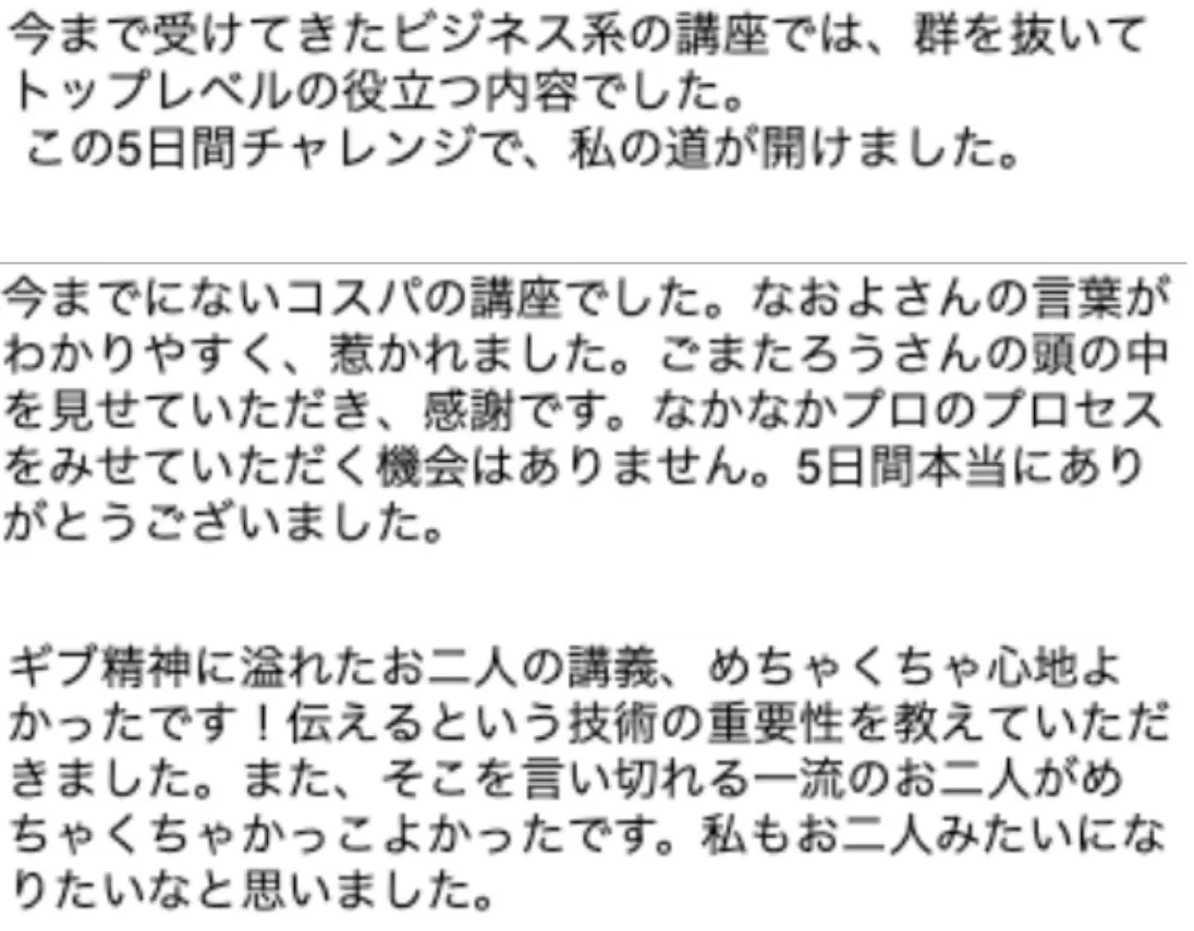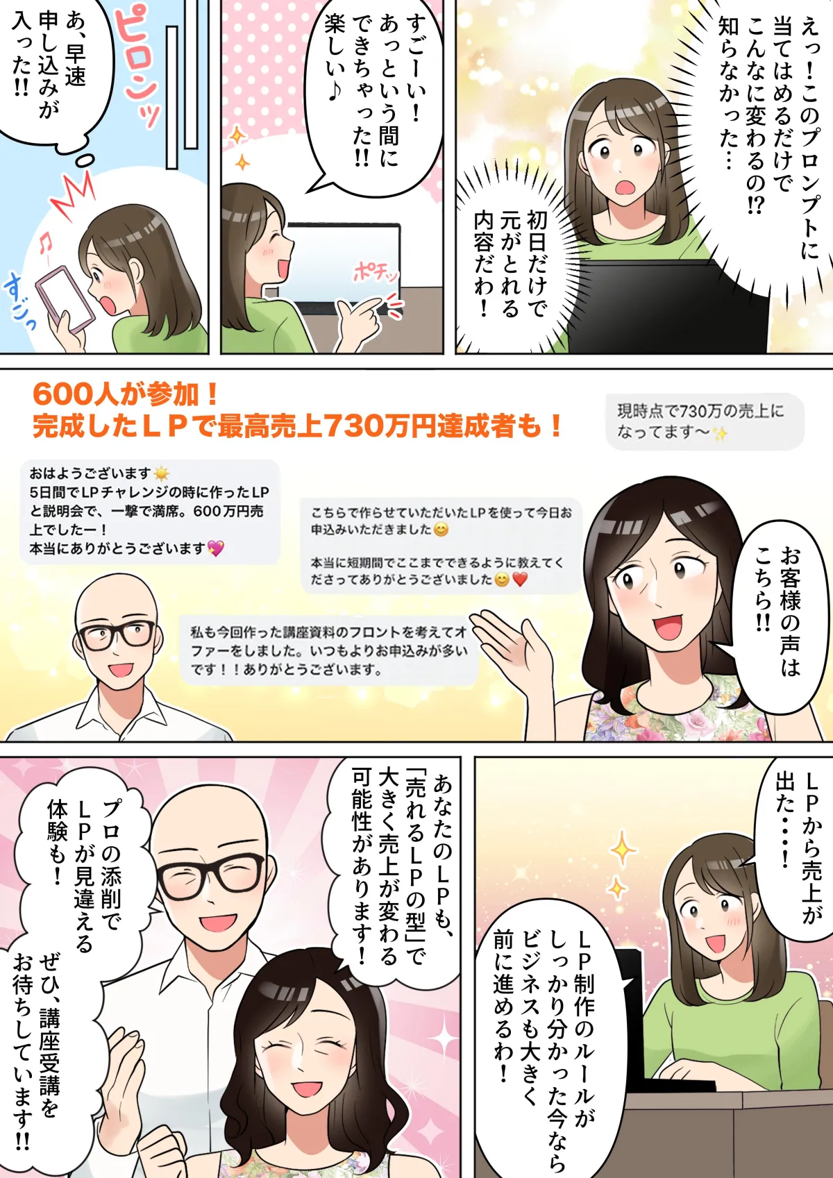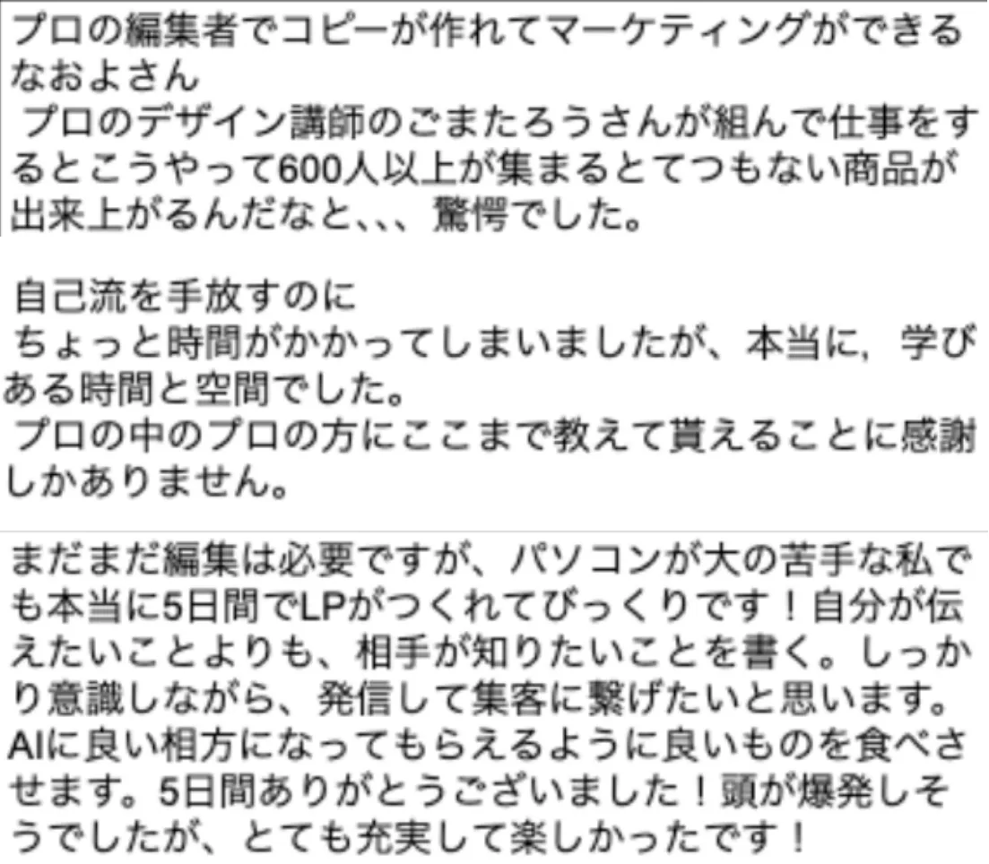 毎日の実践とライブ添削を通して、5日後には「あなたの商品専用LP」という完成品を手にしているはず。